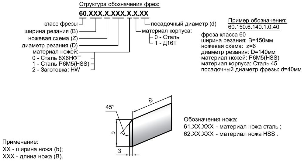 | маркировка фрез | B mm | D mm | d mm | b max | Z |