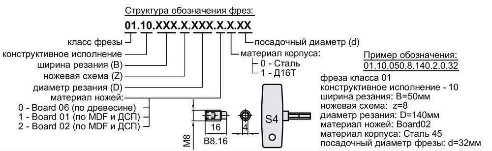 | маркировка фрез | B mm | D mm | d mm |