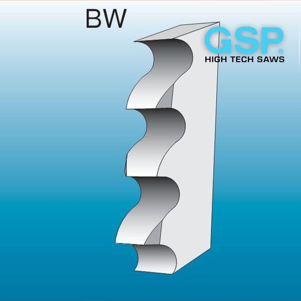 Пильные диски оснащены зубом формы BW. Данная конфигурация зубчатого венца отличается наличием чередующейся фаски. Эта особенность позволяет рационально распределять стружку между зубами в пропорции 2/3-1/3. Кроме того, фаска формирует дополнительный угол жесткости, который положительно влияет на качество пиления и существенно повышает ресурс диска.