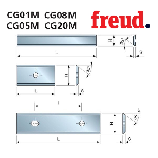 CG18M – изготавливаются из твердого сплава H30S средней твердости, высокой плотности и пластичности. Используются для обработки мягкой и твердой древесины. Благодаря специальным фаскам на углах лезвия,