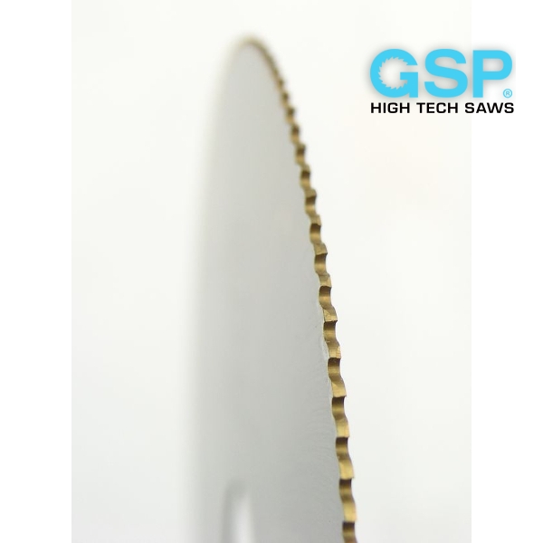 Дисковые пилы GSP предназначены для резки цветных металлов и сплавов. Возможность данных пил качественно обрабатывать латунь, бронзу и аналогичные металлы, обусловлена небольшим, для отрезных пил, количеством зубьев. При обработке сплошных материалов из цветных металлов, например прутьев, такая режущая кромка менее склонна к забиванию вязким материалом, а следовательно — изнашивается дольше. Еще одним отличием, данного режущего инструмента можно назвать уменьшенную толщину корпуса (1,2-2,0).