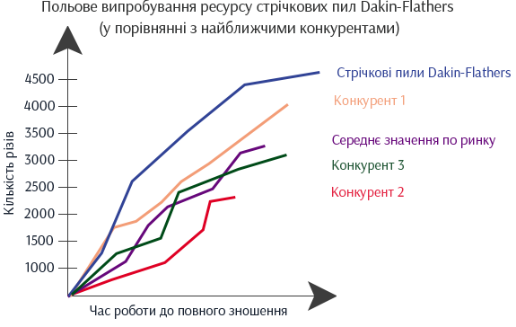 Пилы по дереву Dakin-Flathers способны служить на 37% дольше своих ближайших конкурентов, что подтверждается проведенными исследованиями и тестами. Компания провела много упорной работы для достижения таких результатов как увеличение продуктивности и точности, продолжительности срока службы пил.
