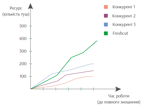 Ленточные пилы для мяса Freshcut с переменным шагом зуба от компании Dakin-Flathers занимают лидирующее место на рынке по ресурсу и износостойкости. Подобный результат продемонстрировали полевые исследования, осуществленные с применением полотен от большинства производителей пищевых полотен. При равных условиях и режиме работы оборудования, пилы Freshcut продемонстрировали ресурс в 2 раза больший, чем у ближайших конкурентов.